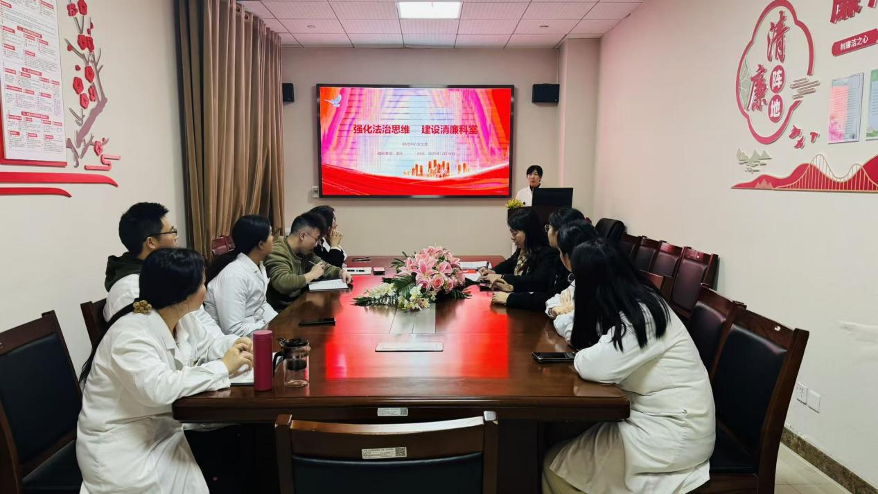 为深入学习贯彻习近平法治思想,推进法治建设和清廉科室建设,2025年12月16日,体检中心党支部在党员活动室开展了四季度专题党课。本次党课由支部书记赵玉兰主持,组织委员梁玲以“强化法治思维 建设清廉科室”为题为全体党员讲党课。